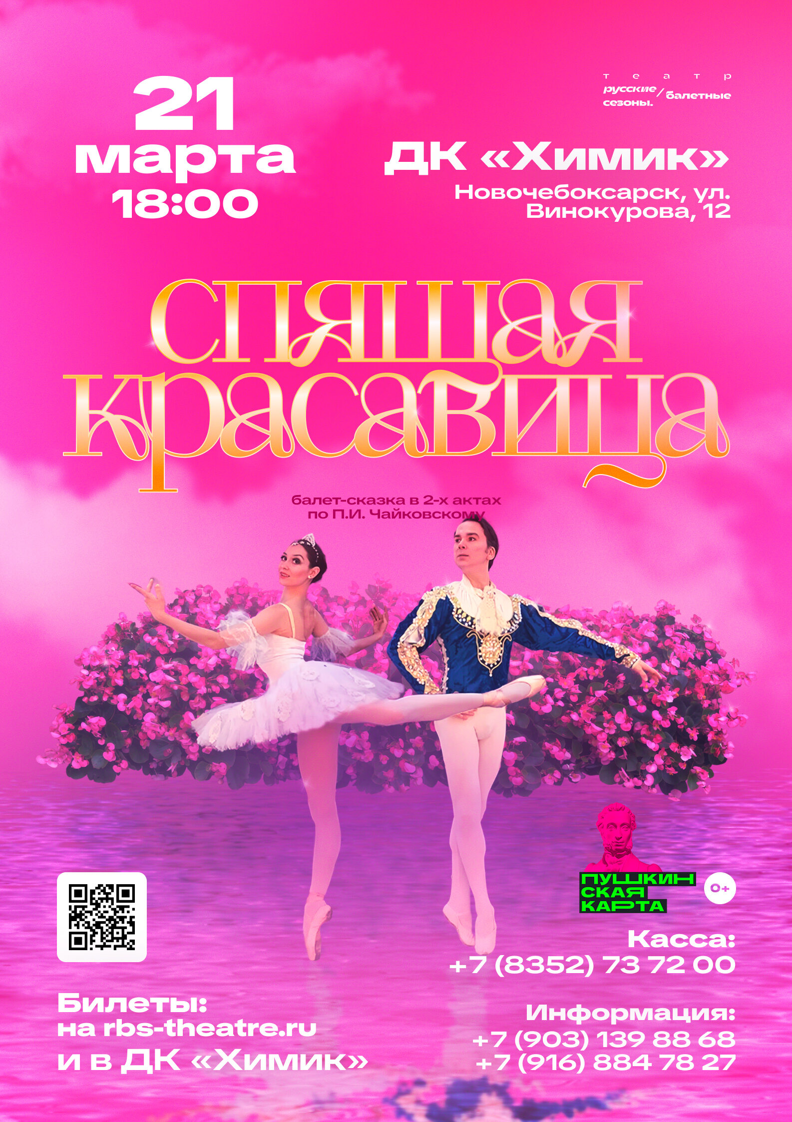 Жемчужина мирового музыкального театра — балет «Спящая красавица» — красивый, романтичный, полный вдохновения и величия. Всем известная история по сказке Ш. Перро никого не оставит равнодушным. Полная весеннего настроения и атмосферы волшебства, постановка станет прекрасным семейным мероприятием и понравится ценителям искусства.